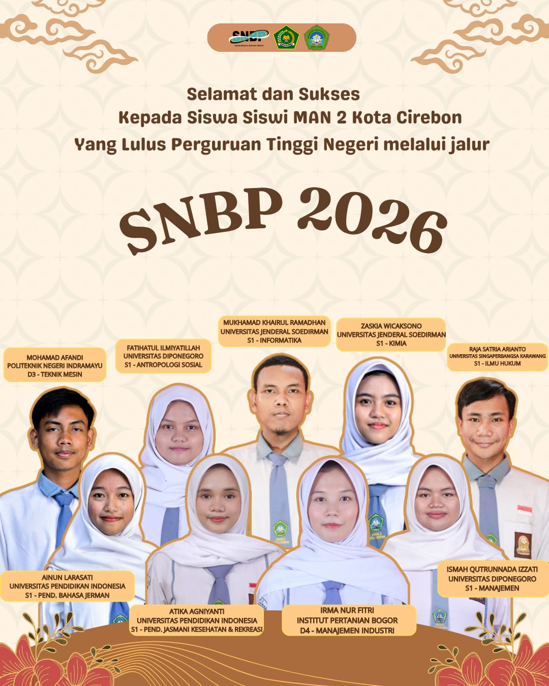 Lolos SNBP 2026, Siswa MAN 2 Kota Cirebon Tembus Berbagai Perguruan Tinggi Negeri